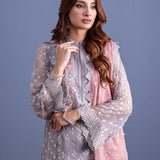 The pure chiffon short shirt sets the tone with its subtle sophistication, draping gracefully over the silhouette with a flattering fit. With an embroidered neckline and meticulously designed daaman and sleeve border. Accompanying the shirt is a luxurious khadi net dupatta, ethereally crafted with sheer fabric that floats delicately around you. Completing the look are viscose tulip pants, offering both style and comfort with their sleek silhouette and modern design.