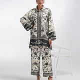 Make a sophisticated statement this Eid in this effortlessly chic black and white printed co-ord set. Crafted from a beautifully flowing fabric that feels luxurious to wear, both the shirt and trousers feature a captivating intricate print that creates a modern yet timeless look. The comfortable, relaxed fit of the shirt, paired with the stylish matching trousers, offers the perfect blend of comfort and elegance.