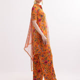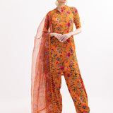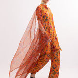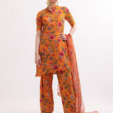 Revitalize your attire with this utterly captivating and vibrant color scheme. The delicate floral print adorns the entire ensemble, complemented by a printed organza dupatta, resulting in an exceptionally modish appearance.