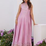Farah Talib Aziz | Zaza Luxe Pret 24 | CECE MAUVE EMBELLISHED RAW SILK KALIDAR WITH CHARMUESE DUPATTA