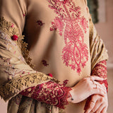 DYED EMBROIDERED SHIRT FRONT 1.25 MTRDYED EMBROIDERED BACK 1.25 MTRDYED EMBROIDERED SLEEVES 0.25 MTRDYED TROUSER 2.6 YARDSDYED EMBROIDERED PASHMINA SHAWL 2.5 MTREMBROIDERED BORDER FOR SLEEVES 1 YARDS