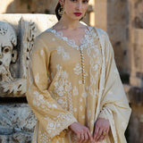 Ebru in Yellow/Light Beige from our Lawnkari '25 Collection. A cutwork embroidered cotton lawn 3-piece outfit paired with dyed voile embroidered dupatta. €‹