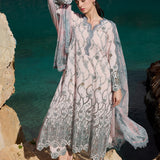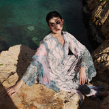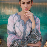 Nehir in Pink from our Lawnkari '25 Collection. A cutwork embroidered cotton lawn 3-piece outfit paired with digital printed chiffon dupatta. €‹