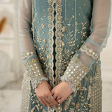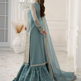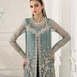Embroidered organza open shirt with sequine and Panni work bling with hand embellishments crystals pearls and naqshi adding the tassels detail at the bottom of shirt beautifully paired with pk rawsilk shrara pants having panii work details and embroidered organza dupatta with Kiran details all over