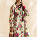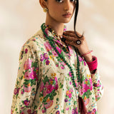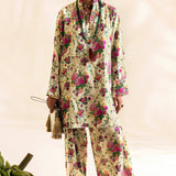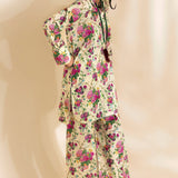Cozana – An ode to effortless sophistication, this off-white co-ord set exudes a harmonious blend of grace and edge. Ethereal floral bouquets entwine with thorned branches, creating a striking juxtaposition of delicacy and boldness, while muted pink hues infuse depth into the intricate artistry.