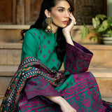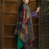 Ravish in this classic yet traditional stunning unstitched teal and magenta ensemble, a perfect blend of contemporary charm and timeless elegance. The fabric features intricate embroidery on the hem, side hem, and sleeves, showcasing delicate craftsmanship that adds sophistication to every detail. The sleeves boast a vintage-inspired design. The ensemble is beautifully complemented by a vibrant, multi-colored traditional shawl, bringing a perfect fusion of rich hues and cultural artistry offering a nod to classic styles while maintaining a modern appeal.