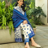 Step into timeless sophistication with this exquisite unstitched ivory and royal blue ensemble. The outfit features intricate floral and ornamental patterns inspired by vintage artistry, creating a refined yet contemporary look. The striking embroidery on the cuffs and borders adds depth and elegance, making it perfect for any formal or festive occasion. Paired with a luxurious royal blue shawl adorned with subtle tonal patterns, this ensemble exudes grace and grandeur.